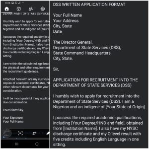 Note: DSS does not conduct its recruitment online; any false link should be disregarded, and the format of how the letter will be written will be provided for better clarification.